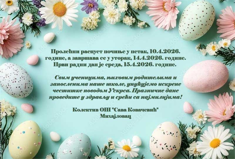 Обавештење за пролећни распуст